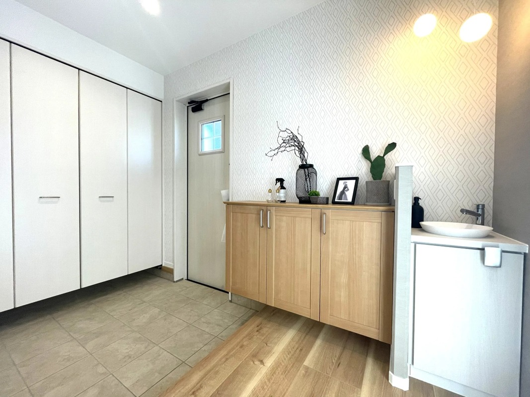 玄関そばに手洗いスペースを設置。手洗いを...