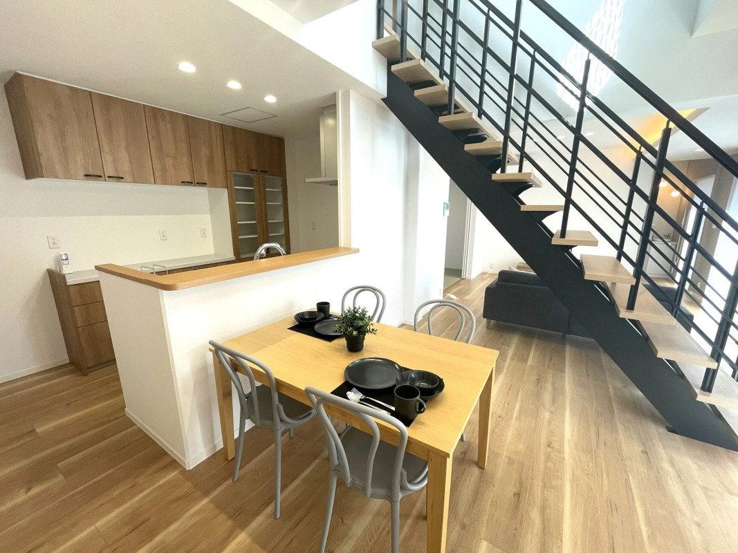対面キッチンからはリビング全体を見渡すことができ、家事をしながらでも家族との会話が弾む、つながりを感じられる住まいです。