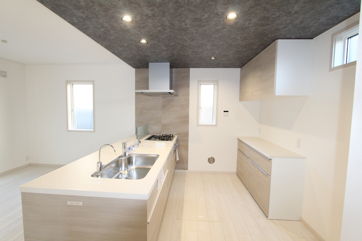 ペニンシュラタイプキッチンですので、カウンターでの軽食をしたり家族で会話をしながら料理をするのもいいですね。オープンなキッチンですので家族が集うリビングを見渡せます。