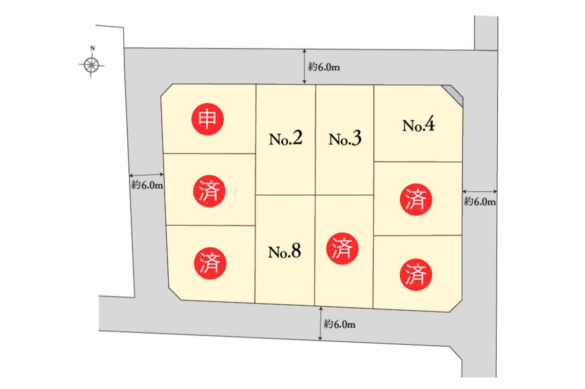 | 完成予定日 | 2025年7月(No.3)、2025年8月(No.4、No.8)、2025年12月(No.2) | 引き渡し可能年月 | 即引渡し可 |