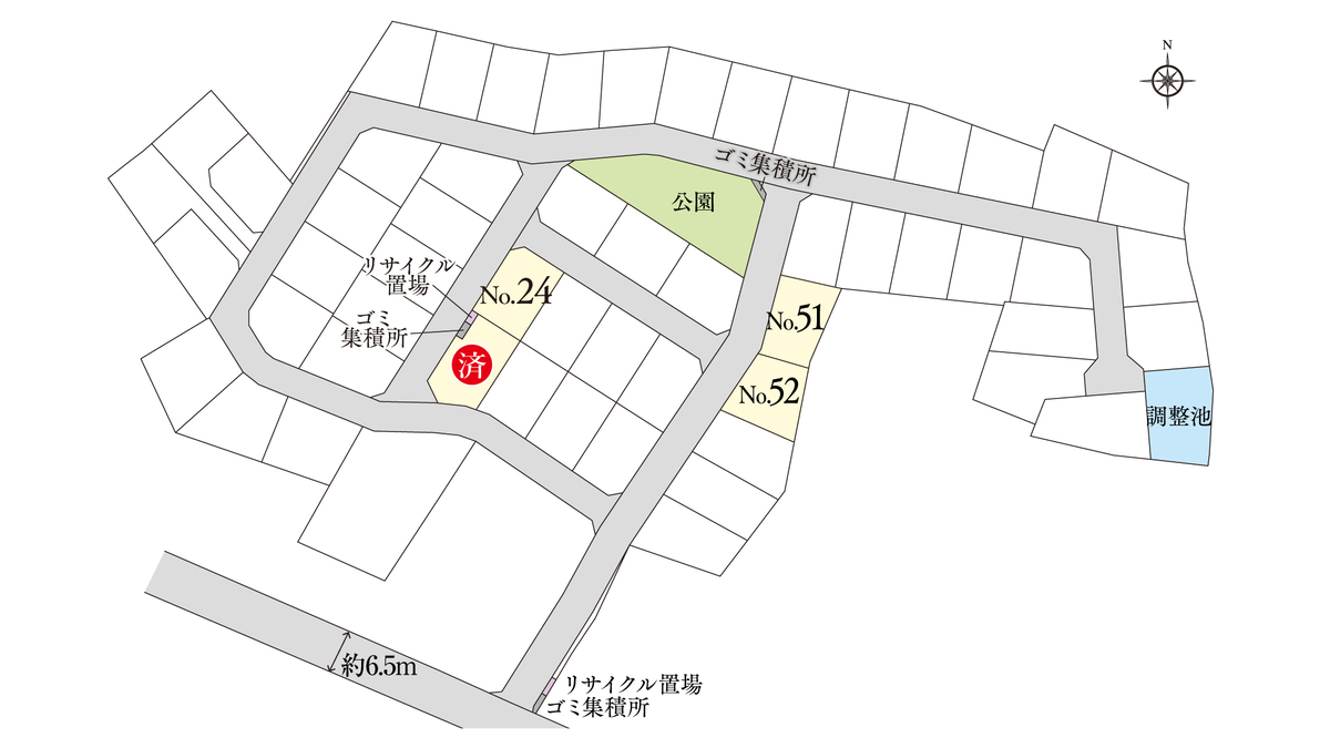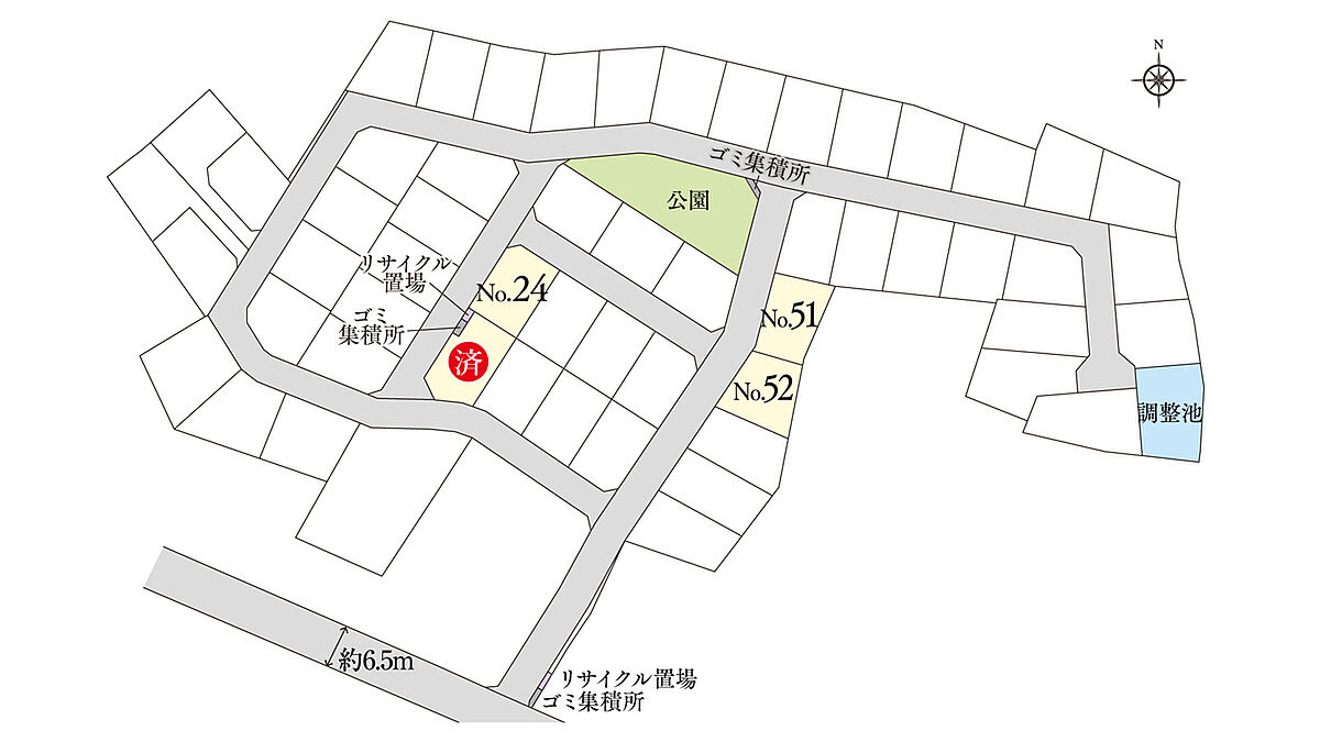 | 駐車場 | - | 道路の幅員 | 南側6.5m、分譲地内6.0m公道(アスファルト舗装) |