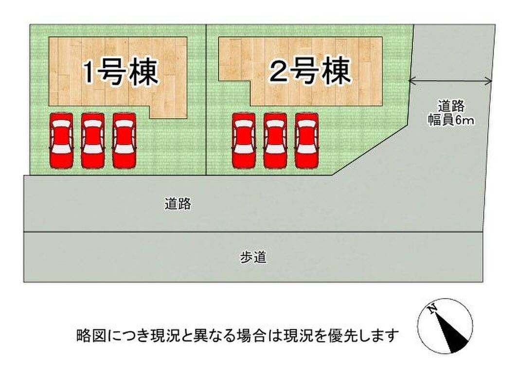 | 駐車場 | - | 道路の幅員 | 道路幅4.4m~6.0m 接道状態(一方道路)接道(1)(公道【方角】南【幅員】4.4m) |