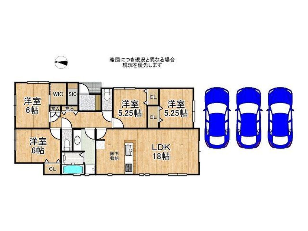 | 間取り | 4LDK・5LDKLDK16.5帖・17帖 駐車2台 2面採光 全居室収納スペース 廊下収納 シューズインクローゼット | 建物構造 | 木造2階建て |