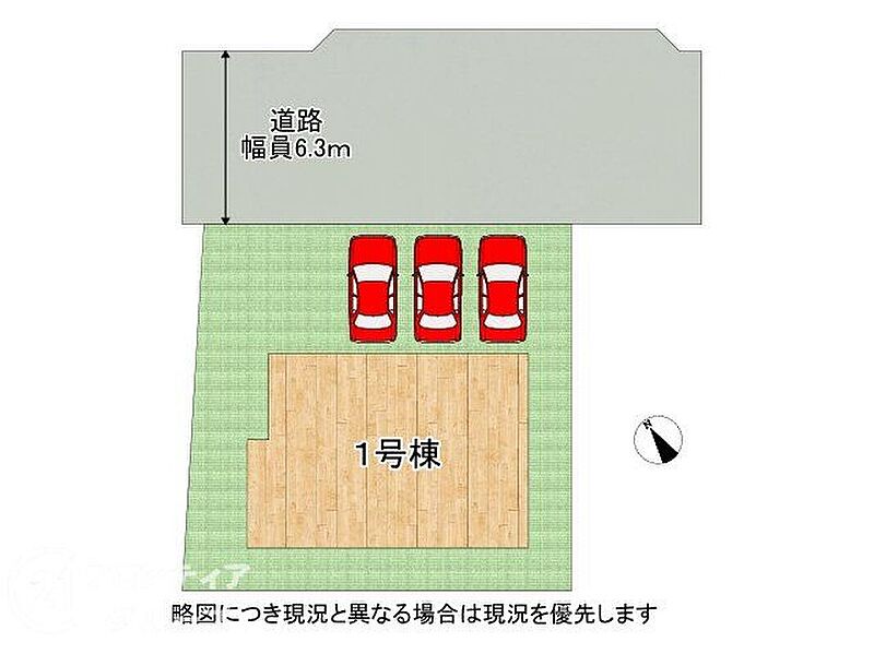 | 駐車場 | - | 道路の幅員 | 道路幅6.3m 接道状態(一方道路)接道(1)(公道【方角】北【幅員】6.3m) |