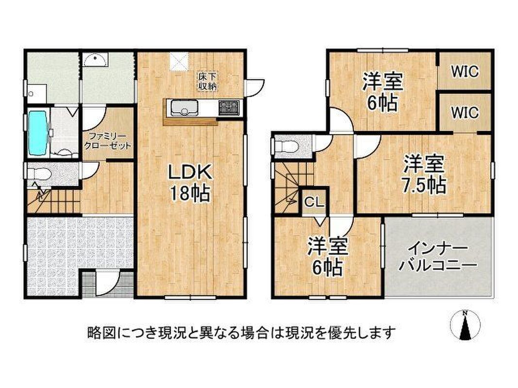 - 3LDK・4LDKLDK16帖・18帖 駐車2台 和室 床下収納 2面採光 全居室収納スペース 廊下収納 リビング収納 全洋室6帖以上