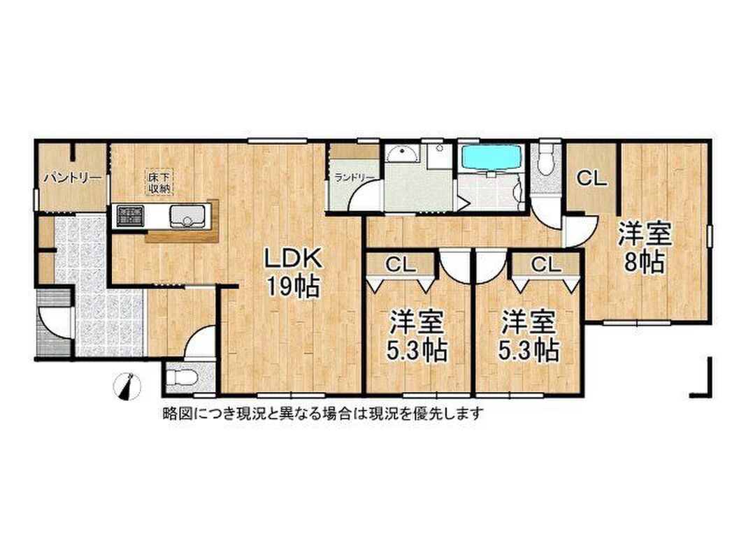 - 3LDK南向き・和室・パントリー・WIC・全居室収納・ルーフバルコニー