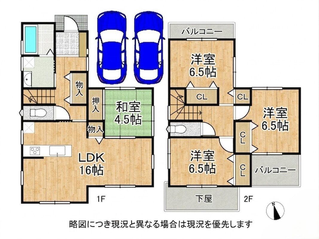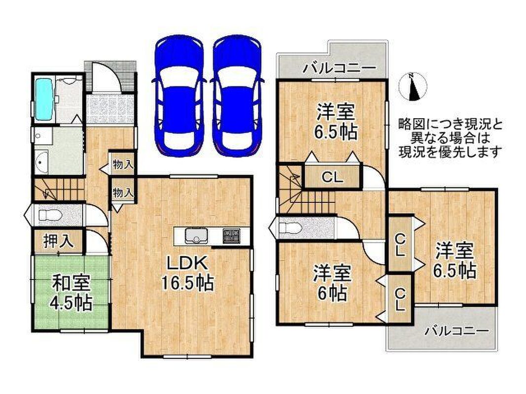 | 建物面積 | 97.20m2・98.01m2(実測) | 土地面積 | 161.11m2(実測) |