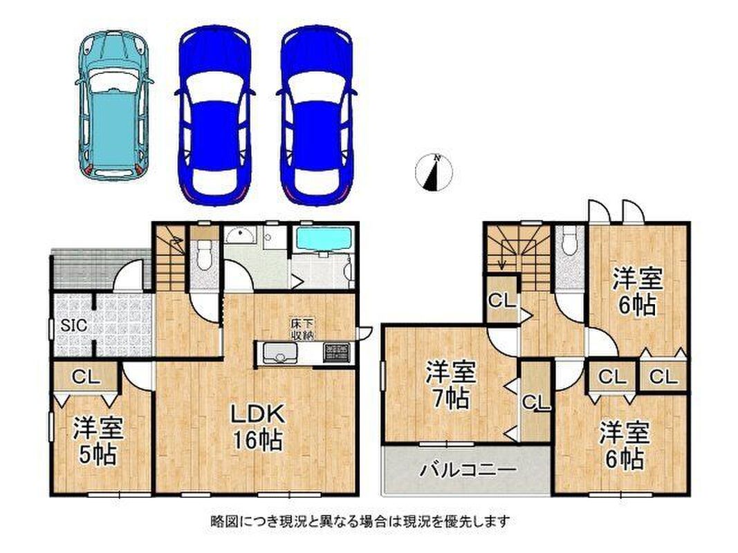 | 建物面積 | 99.36m2・100.61m2(実測) | 土地面積 | 166.28m2・168.05m2(公簿) |