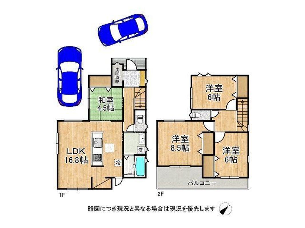 | 建物面積 | 99.63m2・102.06m2(実測) | 土地面積 | 142.11m2・144.15m2(実測) |