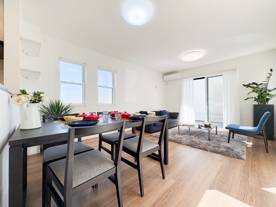 ■暮らしがイメージできる家具が設置済みです。実際に使える広さを感じることができます。