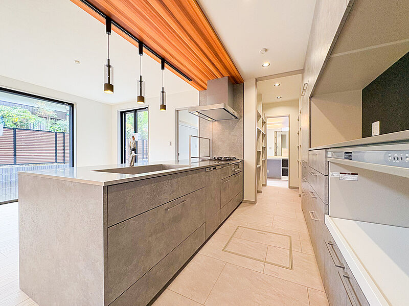 広々とした対面式システムキッチン。使いや...