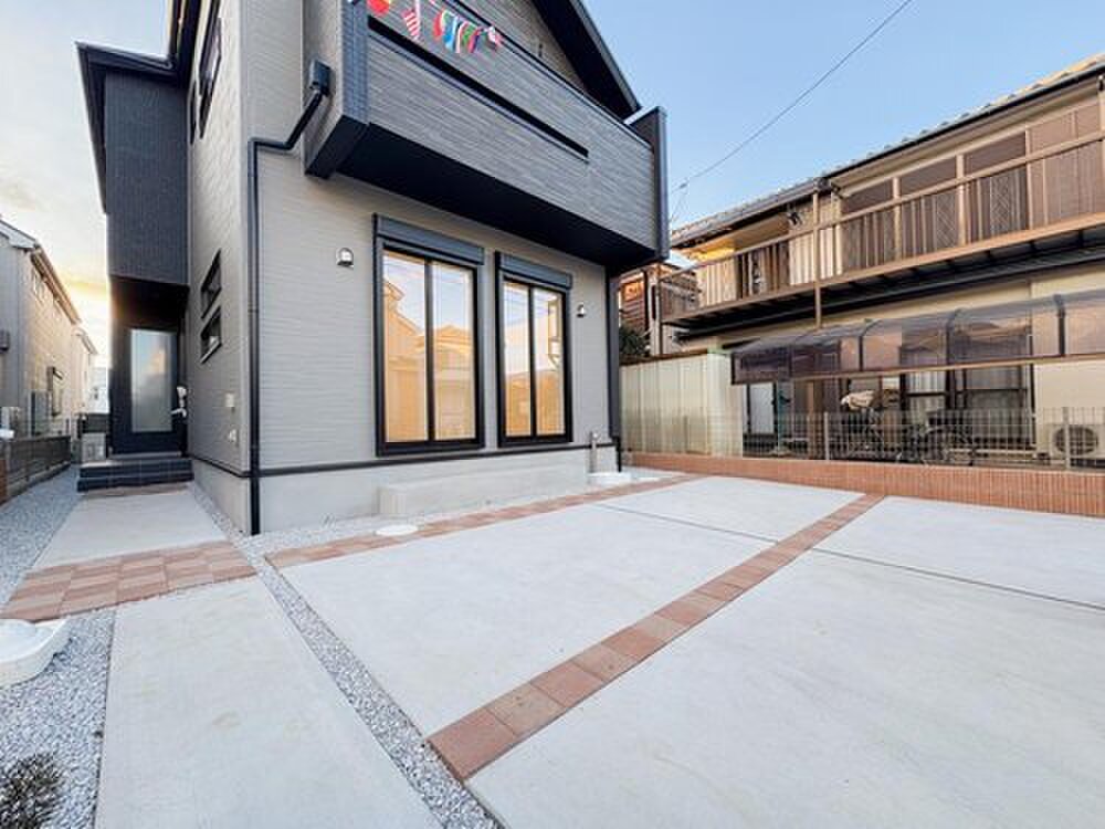 - カースペース2台分の広々とした駐車場がございます。間取りはもちろんのこと、デザイン性にも力を入れたこだわりの新築住宅です。ぜひ現地にて本物の仕様、質をお確かめください。