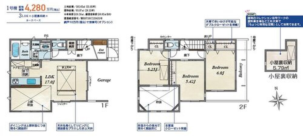 - 93.07m2(28.15坪)(登記)、うち1階車庫10.26m2、備蓄倉庫付住宅