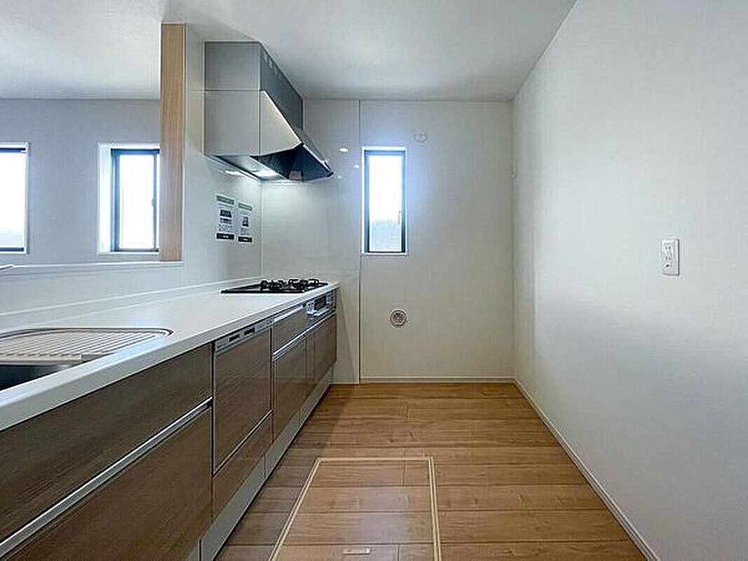 家族を見守れる対面キッチンや使いやすい水回りなど、日々の家事動線に配慮。