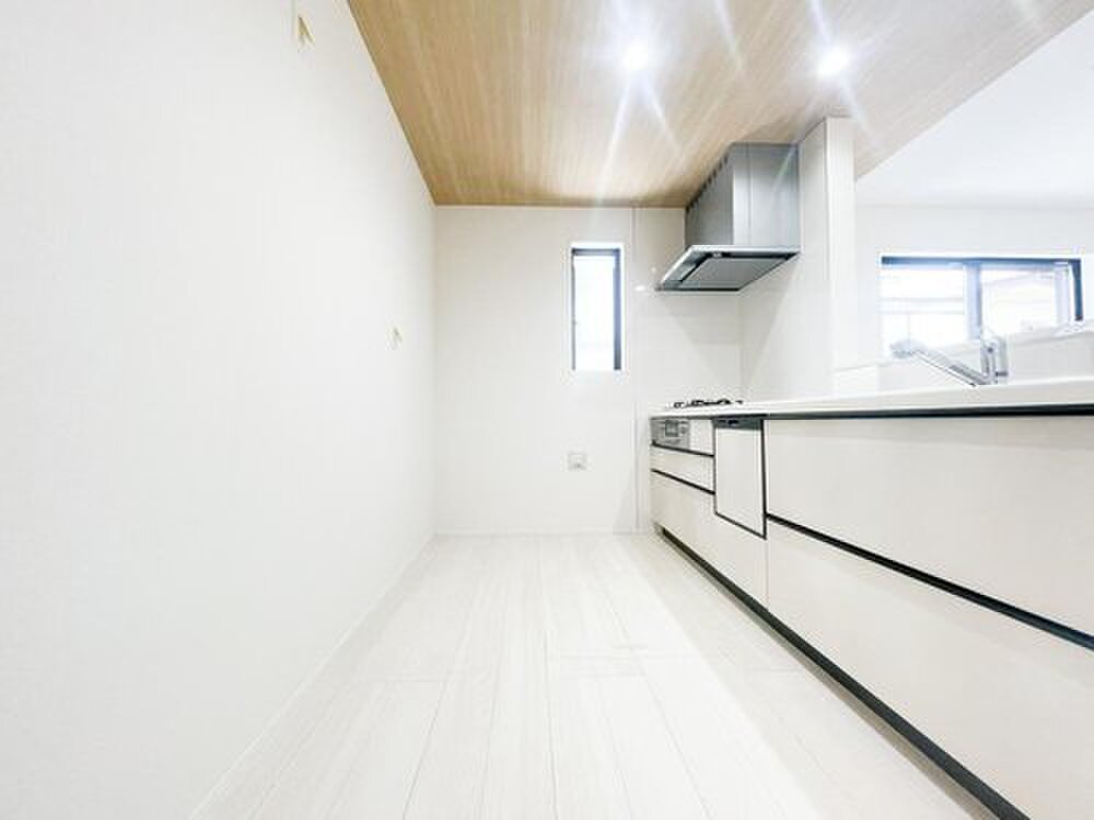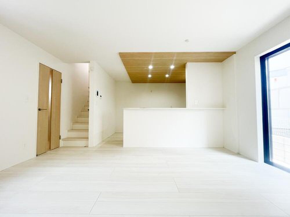 15帖のLDKは開放感あふれる設計で、家族が自然と集まる心地よい空間。対面キッチンにより家事をしながら会話も楽しめます。