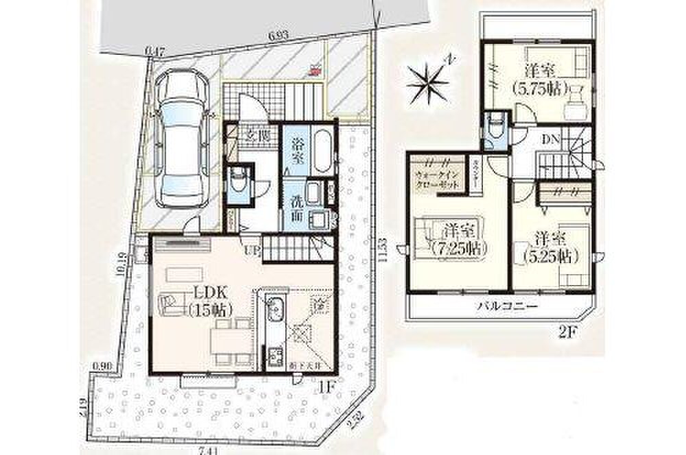 | 駐車場 | カースペース | 道路の幅員 | 北西4.5m幅、私道負担:無 |