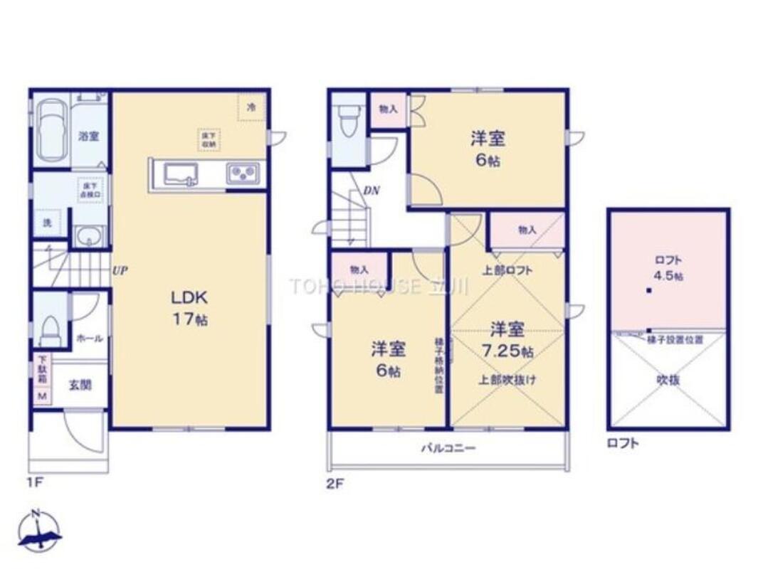 水回りを集約した家事動線の良い間取りに加え、ロフト付きで収納力も充実しています。