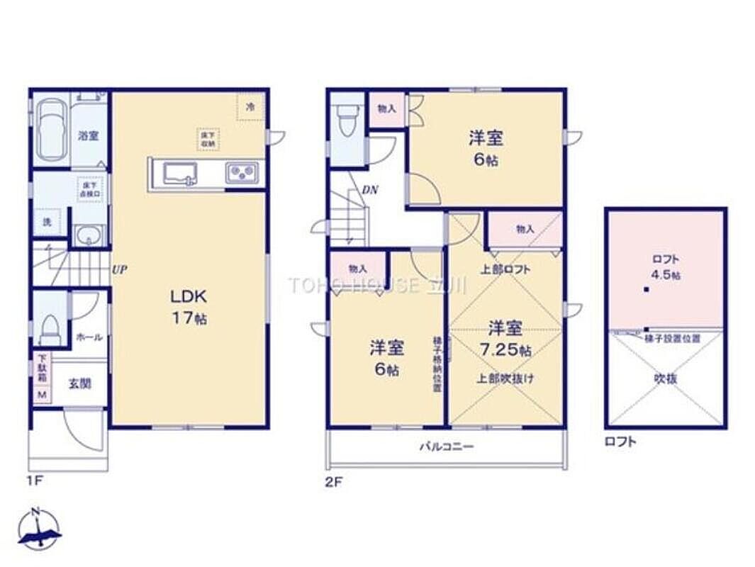 水回りをまとめた使いやすい間取りで家事効率も向上。ロフト付きで収納力も高く、ゆとりある快適な暮らしを実現します。