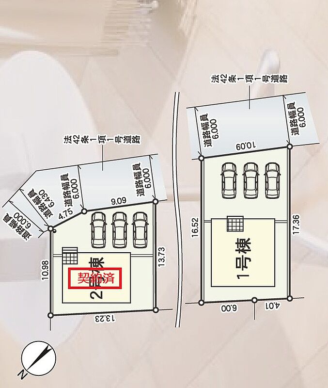 | 建物面積 | 1号棟107.73m2(32.58坪) | 土地面積 | 1号棟169.47m2(51.26坪) |