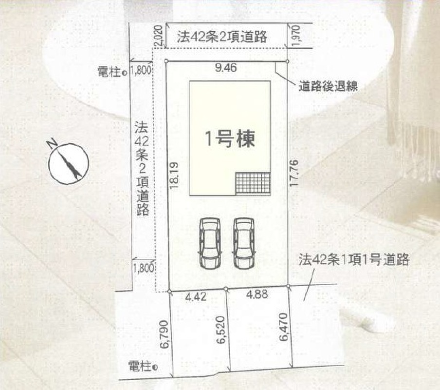 | 駐車場 | 2台 | 道路の幅員 | 南側6.79m公道、西側2.9m私道、北側3.0m私道 |