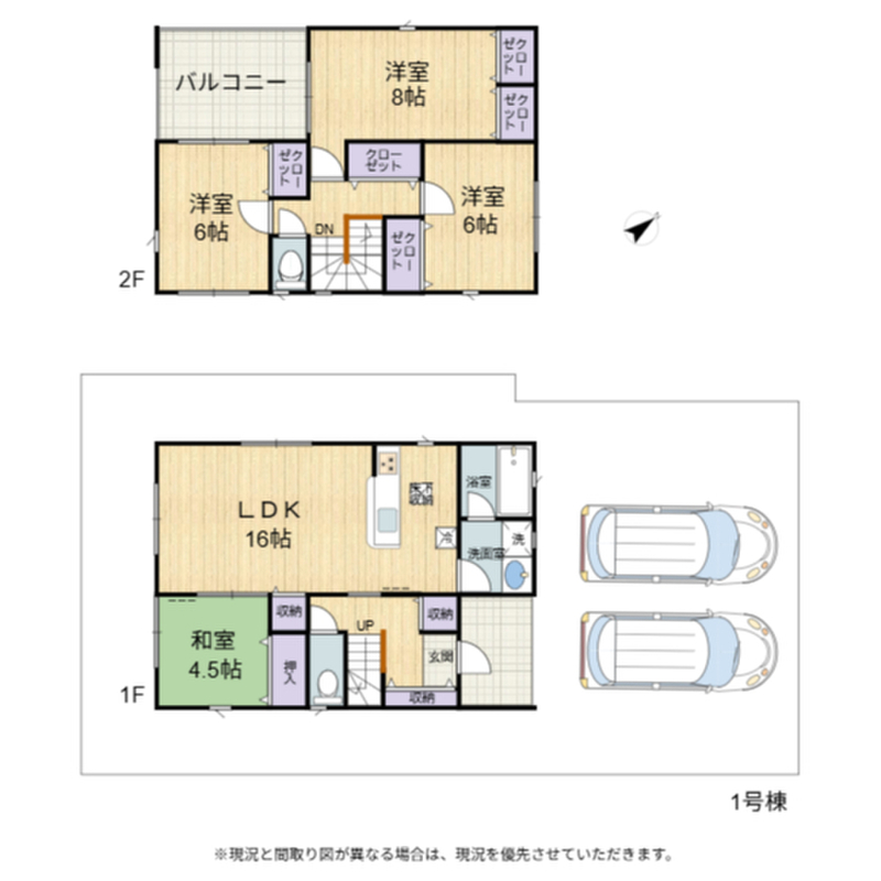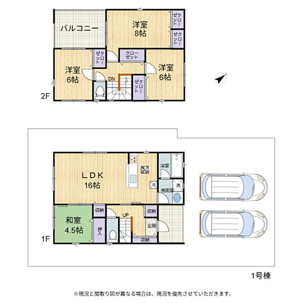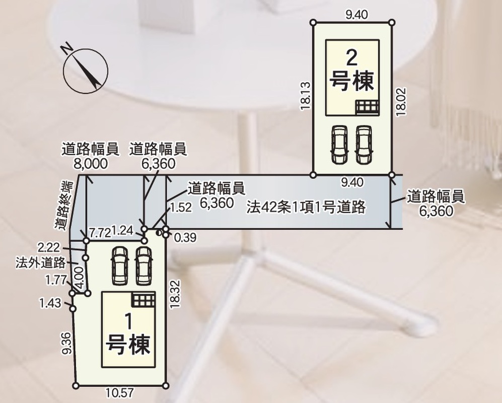 | 建物面積 | 108.54m2(32.83坪) | 土地面積 | 1号地177.09m2(53.56坪)2号棟169.93m2(51.4坪) |