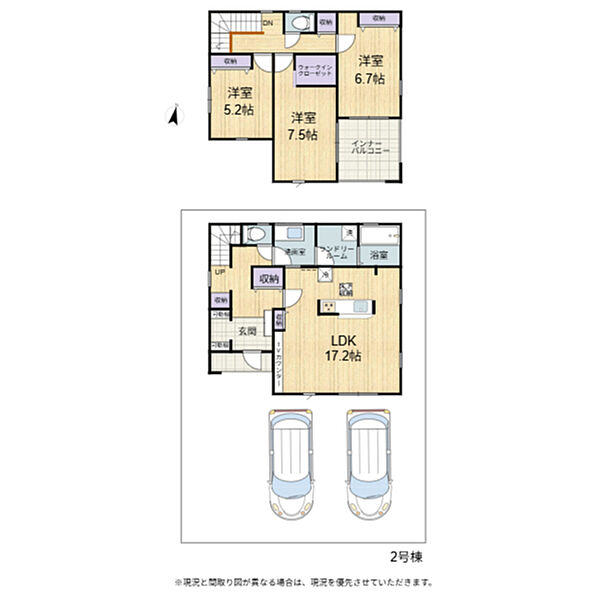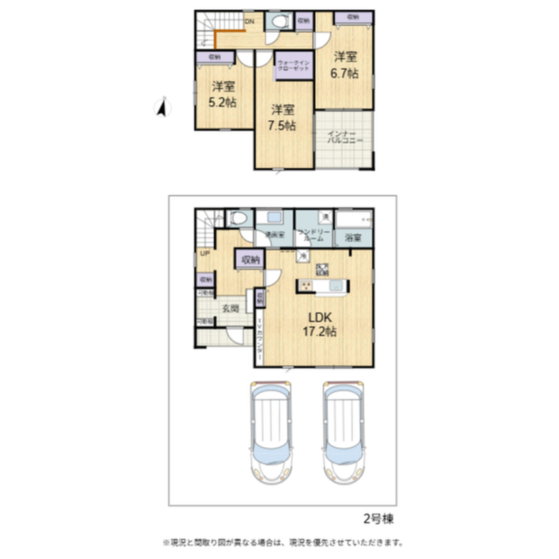 | 間取り | 1号棟3LDK+4WIC 2号棟3LDK+WIC | 建物構造 | 木造2階建て |