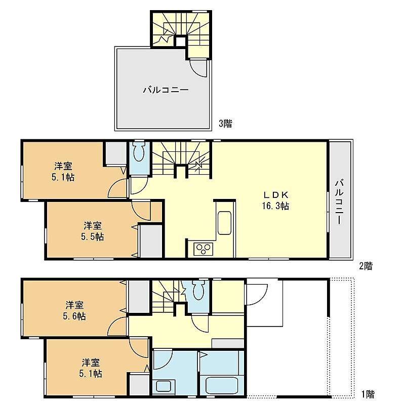 | 間取り | 4LDK | 建物構造 | 木造 3階建 |