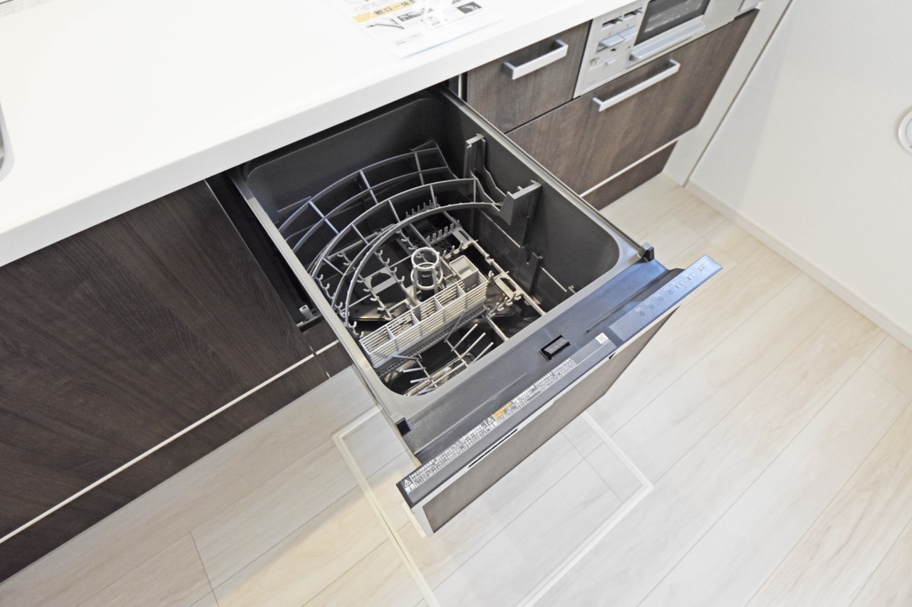 食器洗浄乾燥機:手洗いに比べ使用水量はごくわずか!手洗いよりも高い水温・パワフルな水流で洗うため手で洗いにくいものもお任せ♪手荒れの心配も解消いたします!