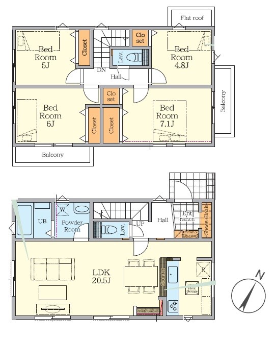5号棟 間取り 4LDK 価格 4999万円 建物面積 101.11m2 土地面積 127.87m2 -