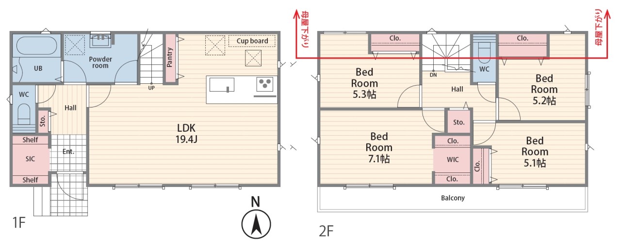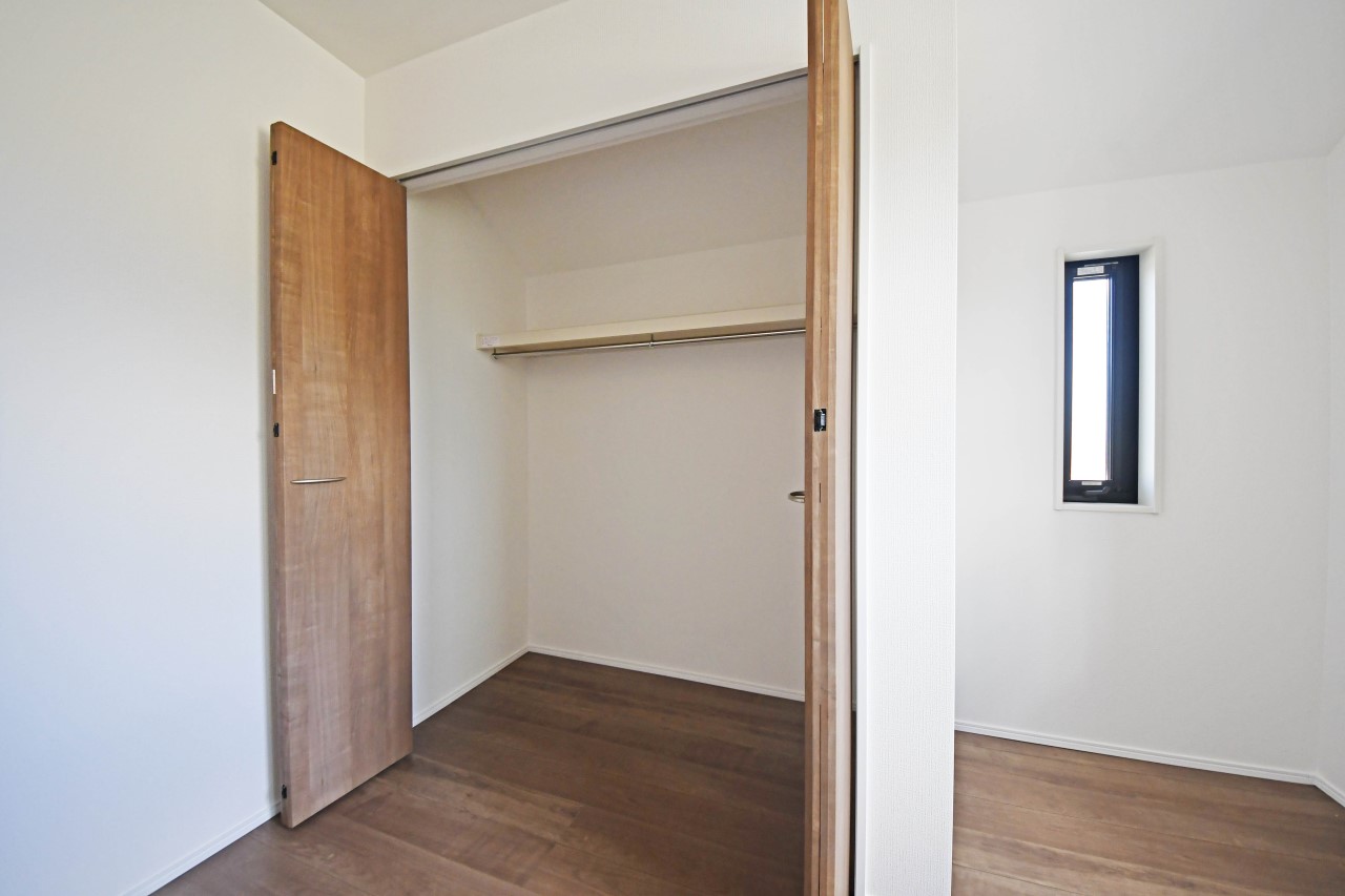 全居室収納:全居室に配置された収納スペースは、洋服はもちろん掃除機や日用予備品・お子様のおもちゃなど様々な物を収納頂けるスペースです。