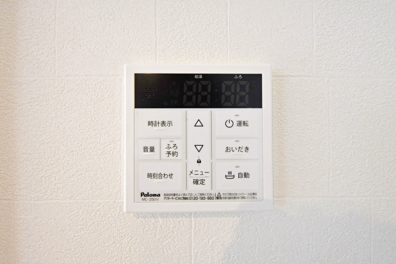浴室暖房換気乾燥機:換気機能によってバスルーム内のカビの発生を抑制できるのに加え、夜間や雨の日の洗濯物の乾燥に便利な乾燥機能も装備。さらに、暖房機能も備えているので、冬の寒い時期には入浴前に予備暖房をすることも可能♪