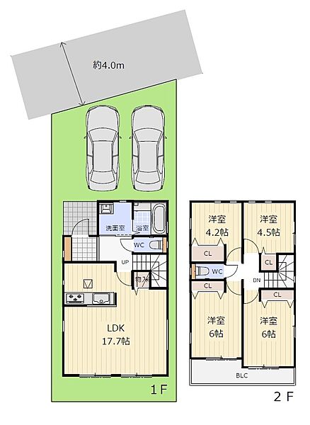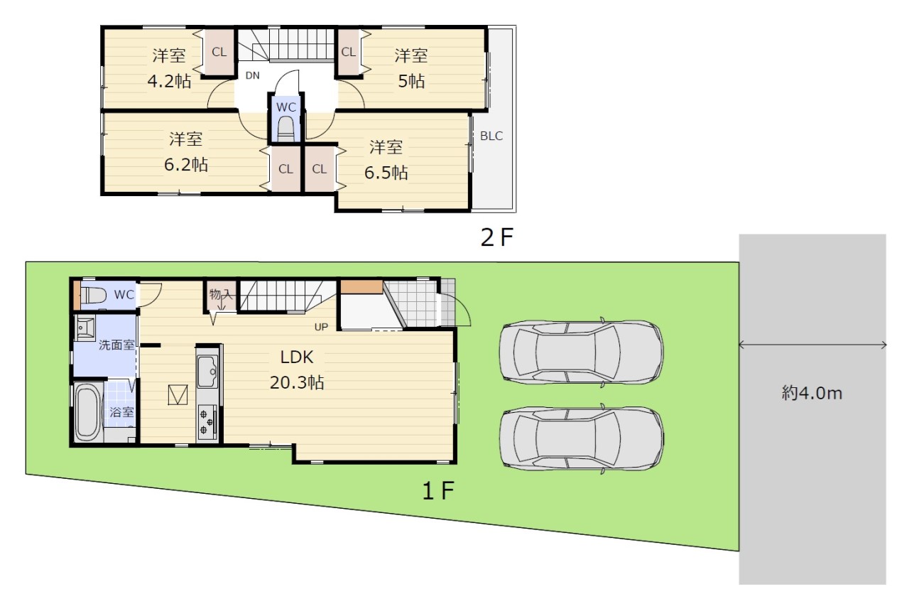| 駐車場 | 2台 | 道路の幅員 | A号棟:北西4m /D号棟:北東4m /C号棟:北西4m 北東4m |