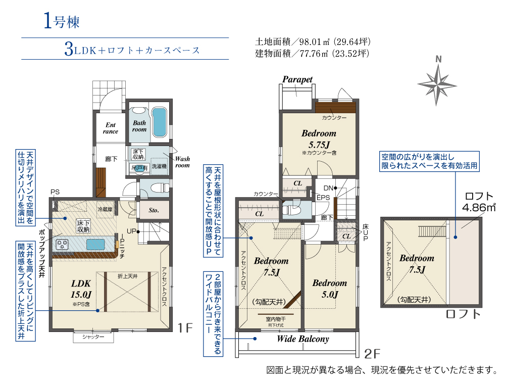 | 建物面積 | 77.76m2(約23.52坪) | 土地面積 | 98.01m2(約29.64坪) |
