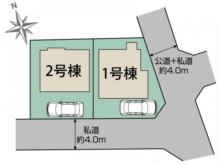 | 駐車場 | 1台 | 道路の幅員 | 東4.0m公道、南4.0m私道 |