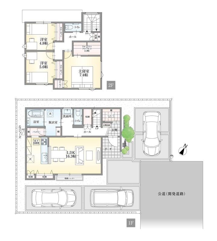 - ※完成予想図やCG合成画像は、門塀・植栽・庭・外観等、実際とは多少異なる場合があります。