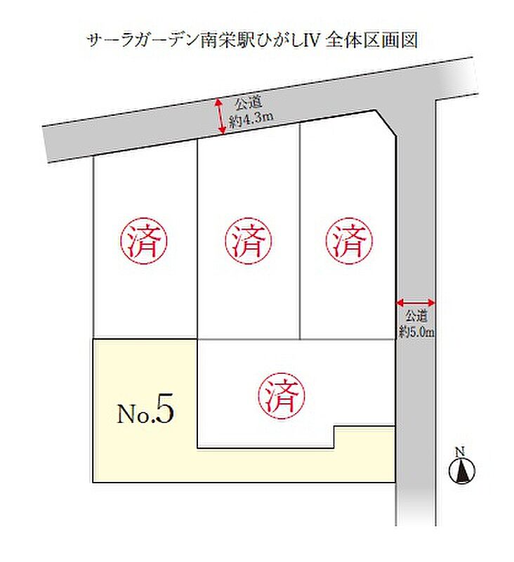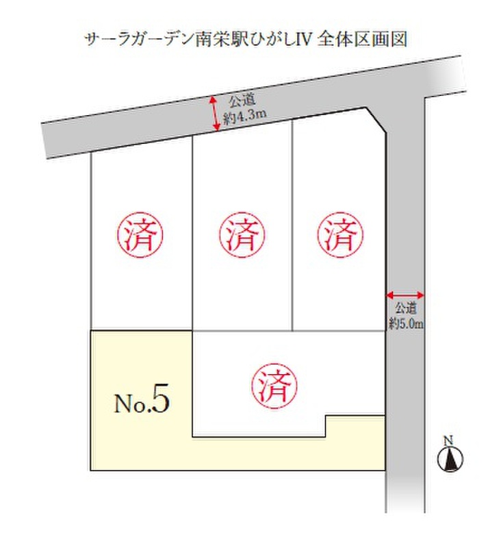 | 駐車場 | 3台 | 道路の幅員 | 東側公道 約5.0m、北側公道 約4.3m アスファルト舗装 |