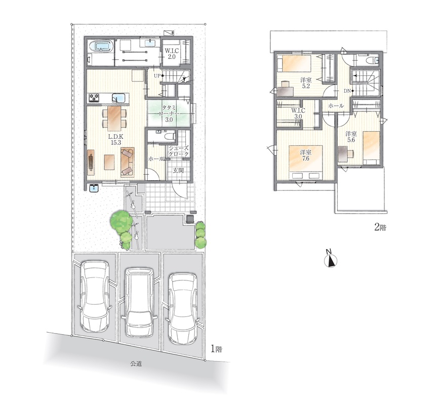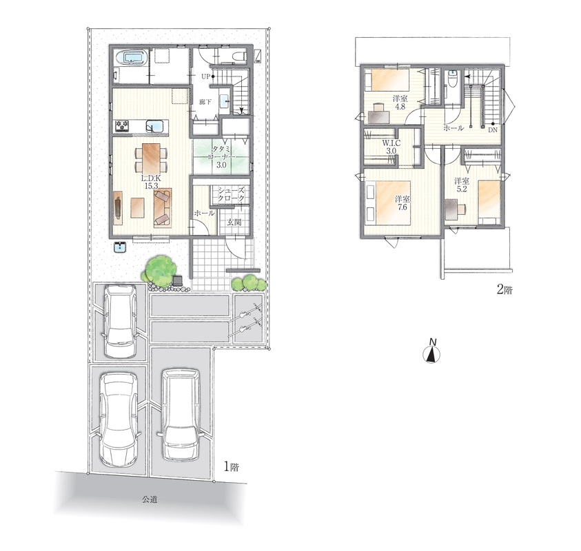 - ※完成予想図やCG合成画像は、門塀・植栽・庭・外観等、実際とは多少異なる場合があります。