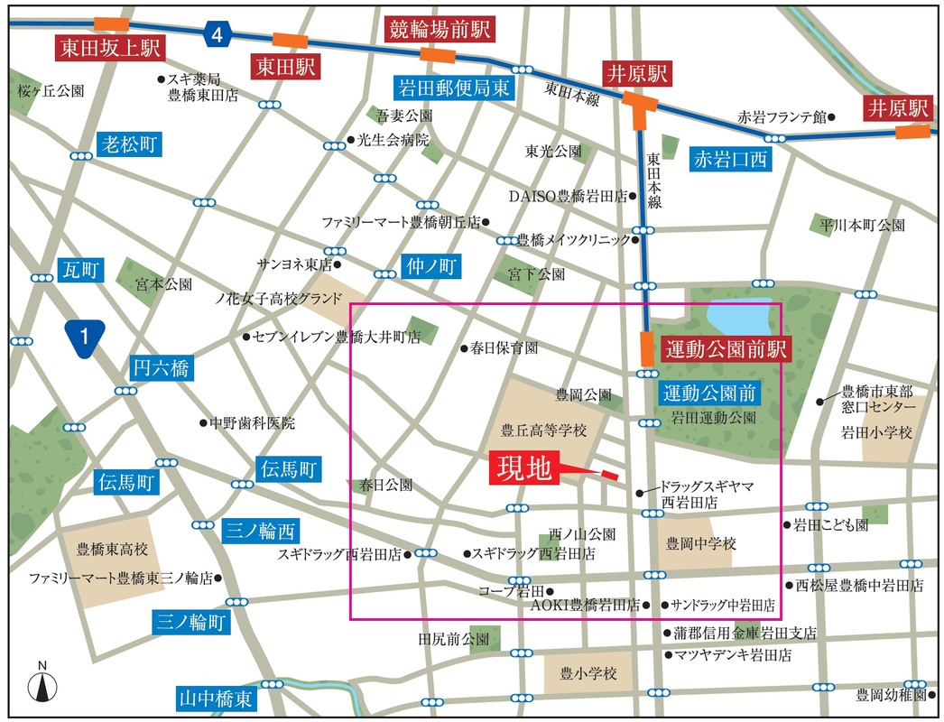 豊橋鉄道東田本線「運動公園前」駅 徒歩6分 コミュニティバス「手芸トーカイ」停 徒歩4分 |