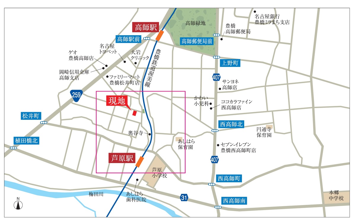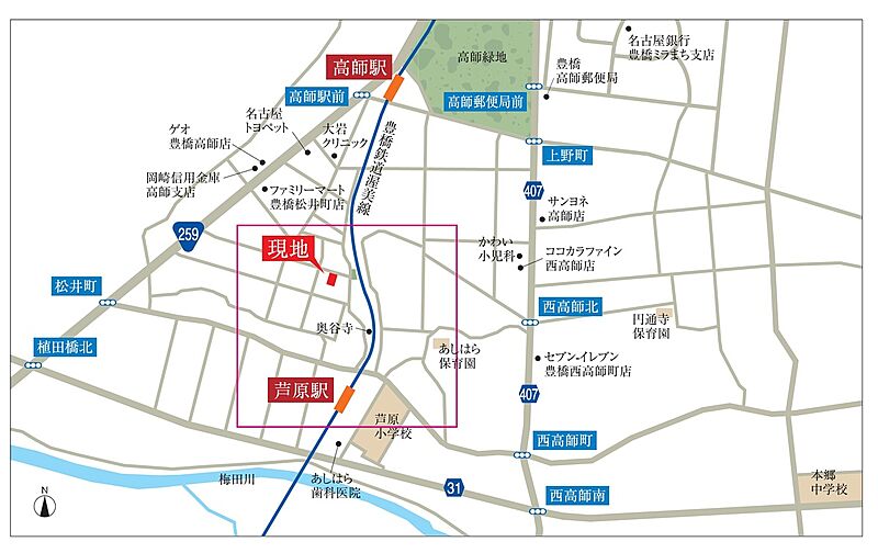 豊橋鉄道渥美線「芦原」駅 徒歩6分 豊橋鉄道渥美線「高師」駅 徒歩10分 |