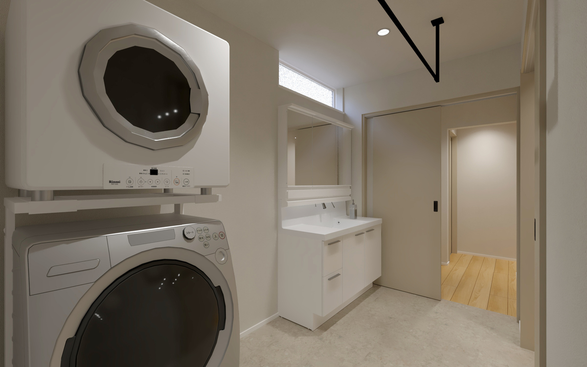 洗面・脱衣をまとめた動線で、身支度や洗濯もスムーズ。乾太くん設...
