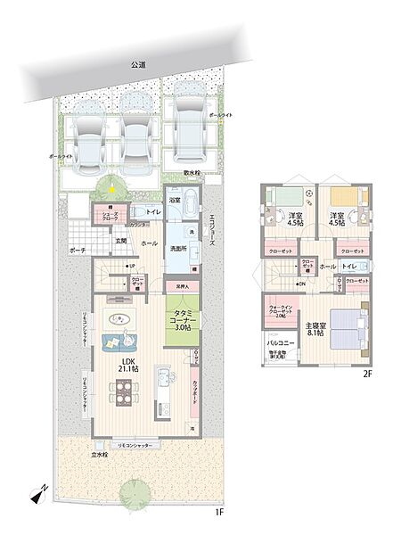 | 間取り | 3LDK+タタミコーナー+ウォークインクローゼット+シューズクローク | 建物構造 | 木造2階建て |