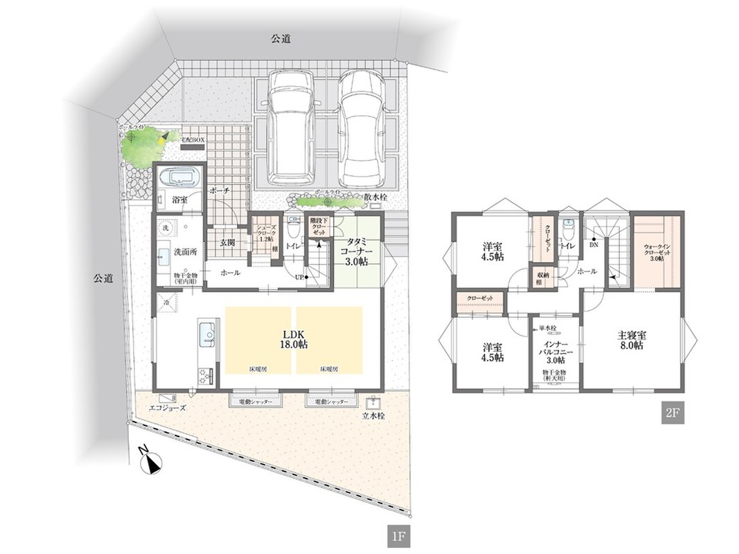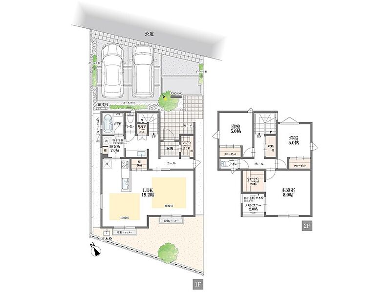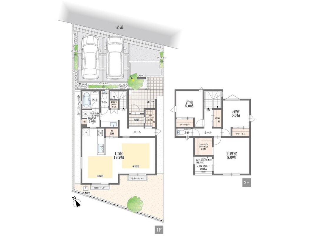 | 駐車場 | 2台 | 道路の幅員 | 公道アスファルト舗装 東約6.37m 西約5.01m |