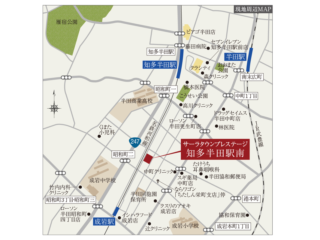 名鉄河和線「成岩」駅 徒歩6分~7分 名鉄河和線「知多半田」駅 徒歩11分~11分 JR武豊線「半田」駅 徒歩16分~16分 |