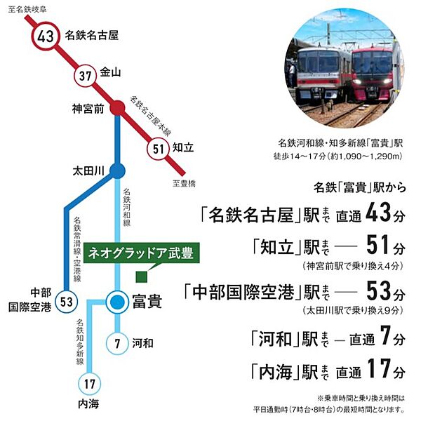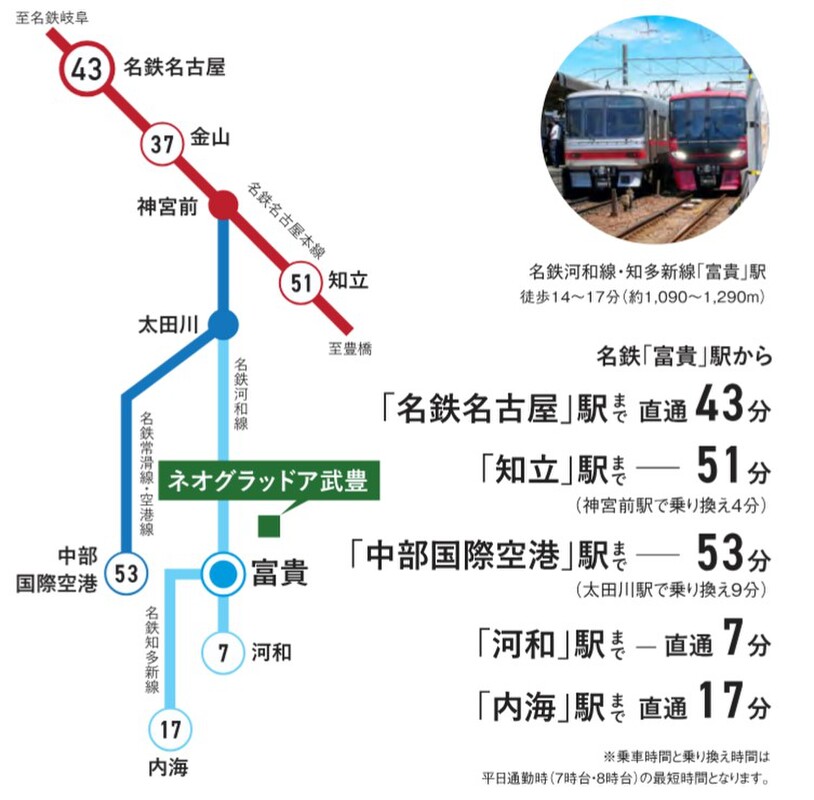 名鉄河和線「富貴駅」まで徒歩14分~17分「名古屋」まで直通