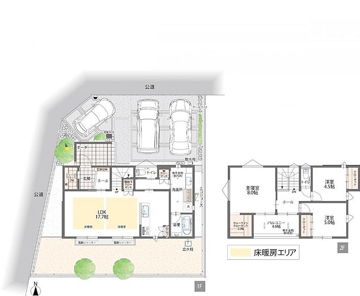 | 建物面積 | 100.71m2(30.46坪)~106.94m2(32.24坪) | 土地面積 | 163.50m2(49.45坪)~167.76m2(50.74坪) |