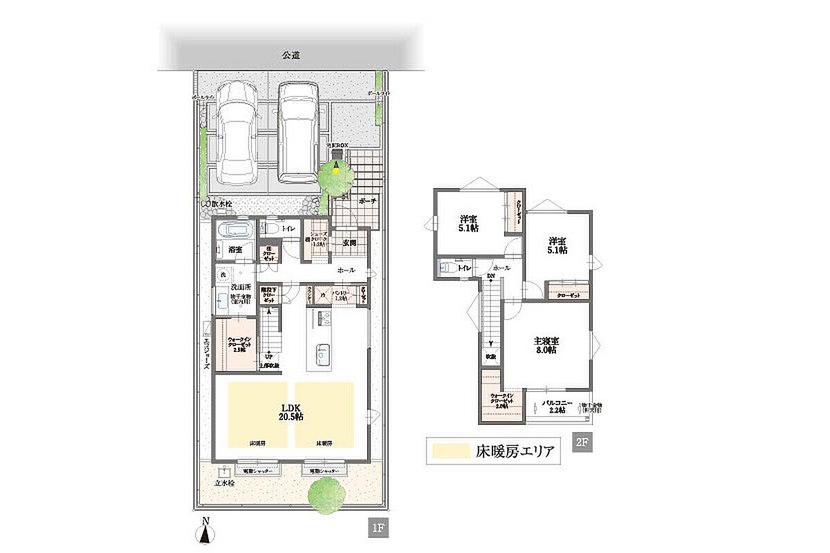 | 駐車場 | 2台 ~ 3台(No.05:3台 No.06:2台) | 道路の幅員 | 北公道アスファルト舗装約5.0m |