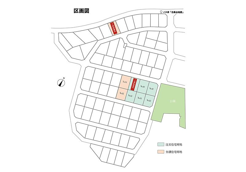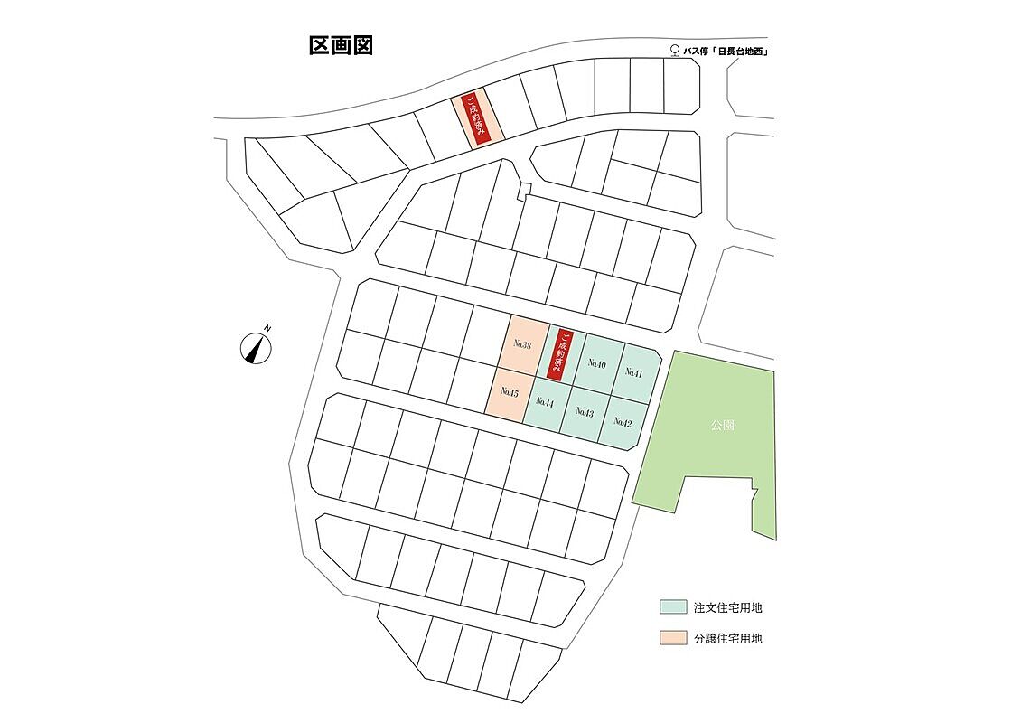 | 建物面積 | 108.49m2(No.45)~106.94m2(No.38) | 土地面積 | 161.99m 2 ~108.49m 2 (49.00坪~32.81坪) |