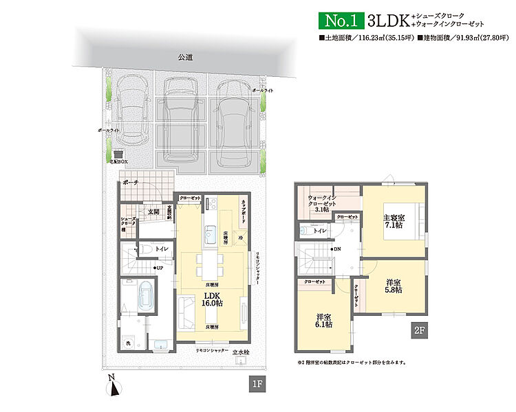 | 建物面積 | 91.10m2~91.93m2(27.55坪~27.80坪) | 土地面積 | 116.23m2~117.22m2(35.15坪~35.45坪) |