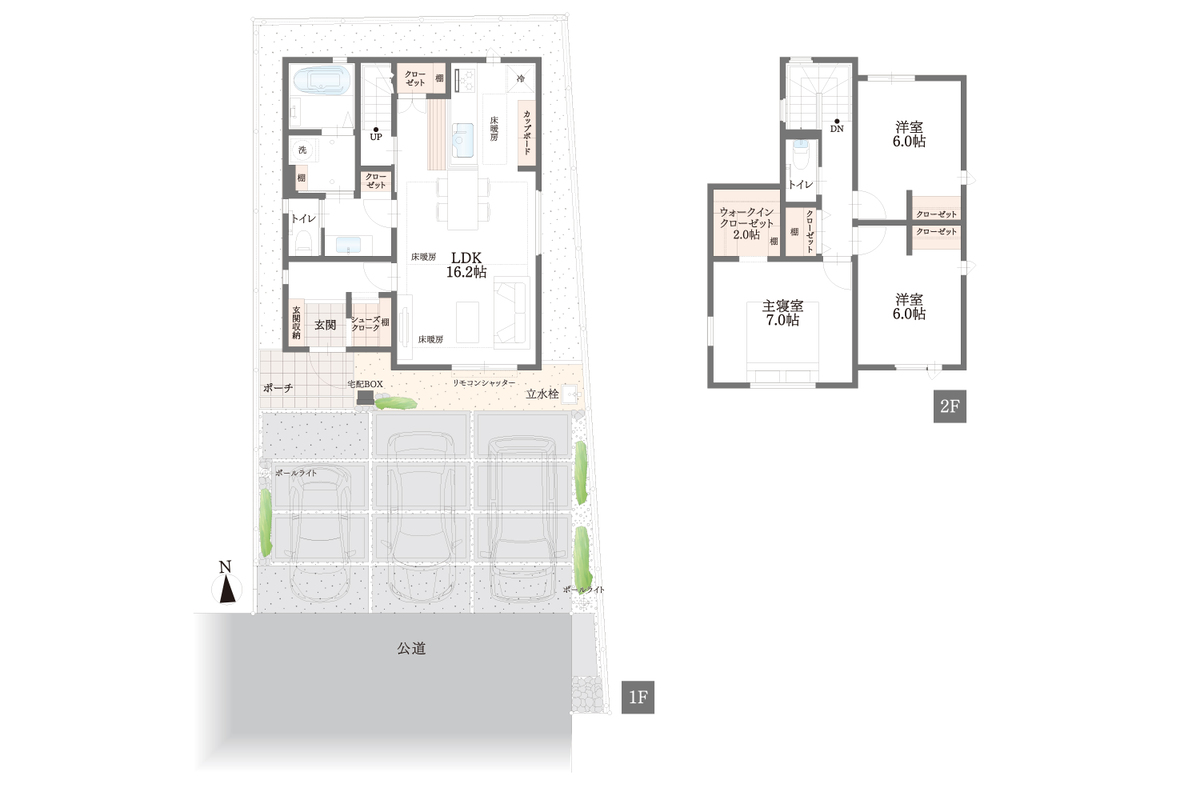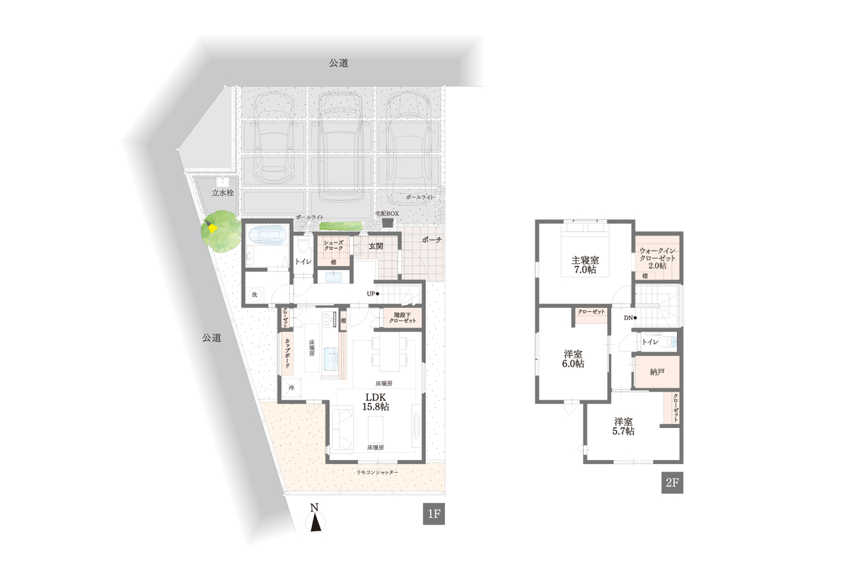 | 駐車場 | 2台 | 道路の幅員 | 公道北側5.0m |