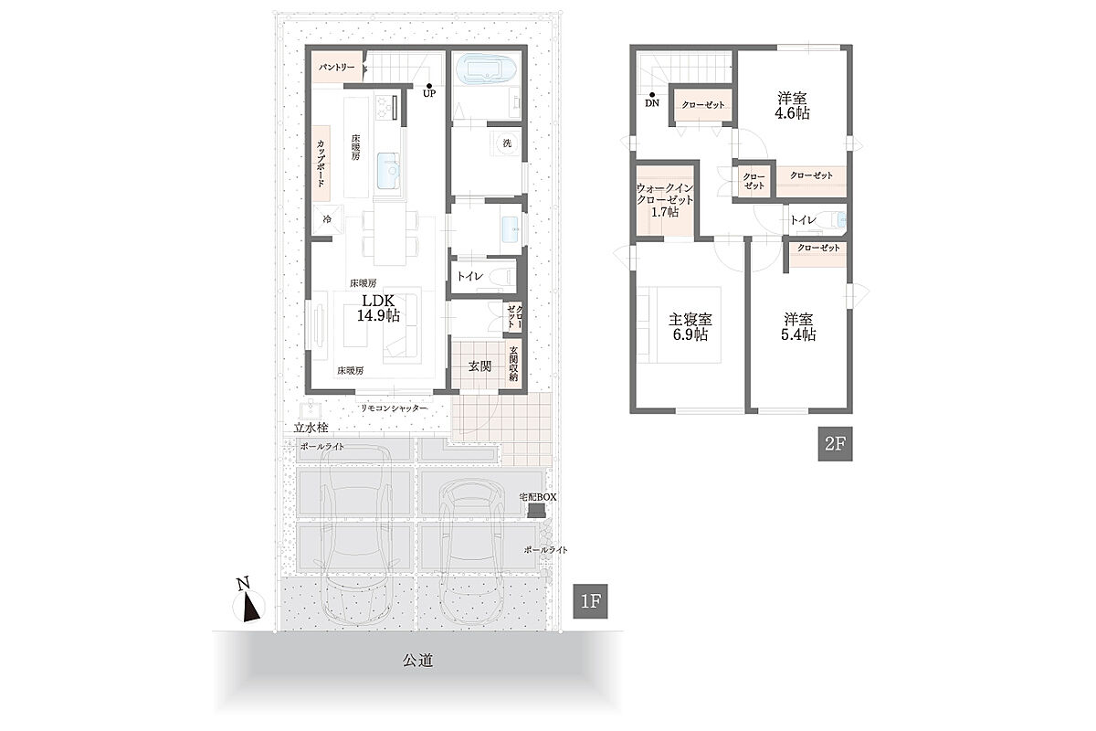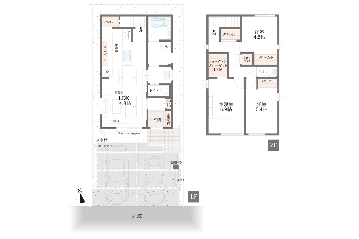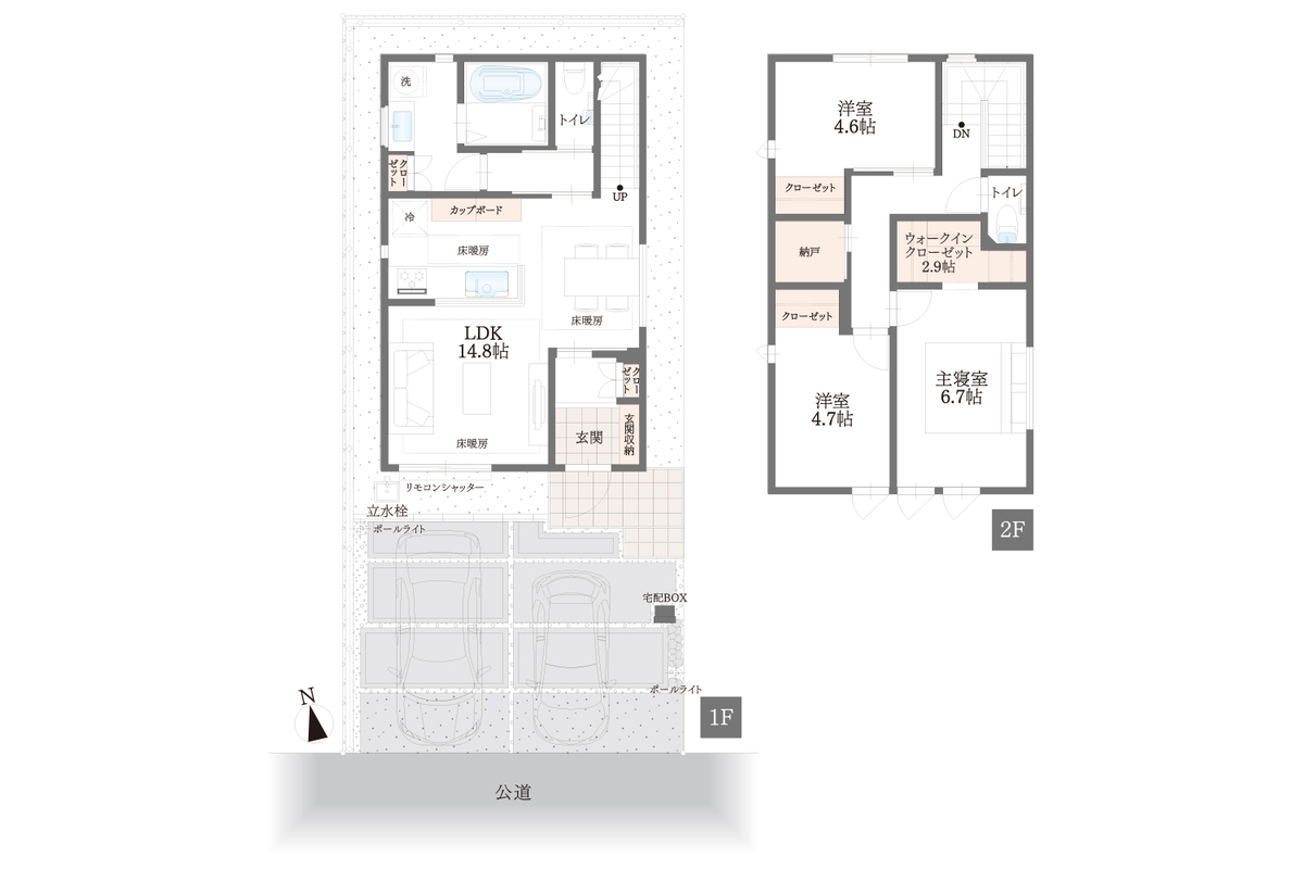 | 建物面積 | 86.83m 2 (26.26坪) | 土地面積 | 99.77m 2 ・99.90m 2 (30.18坪・30.21坪) |